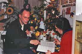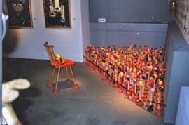 | Made in Germany Anläßlich meiner Ausstellung Made in Germany (mit Objekten, Ready-Mades, Buch-Objekten, Skulpturen, der Vorhut des VOLKES, einer Krawatten-Edition und Bildern) habe ich 1994, als erster Künstler weltweit, einen privaten Raum, und zwar meine Küche (mein Kommunikationszentrum in meiner Wohnung) abgebaut und in Kisten verpackt -inclusive Kacheln, Fußbodenbelag, Schränke samt Inhalt, Kühlschrank, Elektroherd, Waschmaschine, Wassertherme, Gasboiler, Heizkörper, Tisch und Stühlen- und nach Buenos Aires geschickt, desweiteren 50 Kilo deutschen Kaffees, 3.000 Nürnberger Lebkuchen und 2.000 Mini-Wörterbücher (Spanisch-Deutsch / Deutsch-Spanisch). In Buenos Aires, in der Galeria DER BRÜCKE, wurde ein neuer Raum gebaut, mit Stromanschluss und Wasserleitung, in den selben Ausmassen wie mein Küchenraum in Kassel. Der Raum wurde gekachelt (mit den Original-Kacheln meiner Küche in Kassel) und eingerichtet, und war dann, für sieben Wochen meine deutsche Küche in Argentinien, in der ich täglich bis zu sieben Stunden selbstgekochten Kaffee und Lebkuchen an meine Gäste servierte, um mit ihnen zu kommunizieren und mich mit ihnen auszutauschen. Etwa 3.000 Menschen kamen zum Küchenbesuch (mit jeweils vorheriger Terminabsprache und Anmeldung in der Galerie). Wir sprachen miteinander in Englisch und Deutsch. Wer beides nicht konnte, bekam von mir ein Miniwörterbuch geschenkt. |